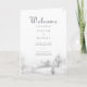 This winter mountain forest folded wedding program is perfect for a destination wedding. The design features a hand-painted forest on hills and mountains in an idyllic winter scene.