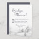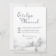 This winter mountain forest front and back wedding invitation is perfect for a destination wedding. The design features a hand-painted forest on hills and mountains in an idyllic winter scene.