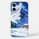 Beautiful anime-inspired phone case showcasing a snowy mountain peak with falling snowflakes and serene clouds. Perfect for scenic and tranquil winter designs.