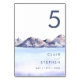This Winter Mountain table number is just what you've been looking for to complete your simple rustic moody wedding. Designed with pink and blue pastel watercolor that blends beautifully into navy and blush highlights all of which perfectly capture an evening in nature. It is sure to bring your minimalist colorado adventure vibe together in a beautiful way! Keep it as is, or choose to personalise it with your photos! You can also look to other items in this collection to truly bring your whole wedding together!