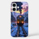 Beautiful anime-inspired phone case depicting a snowy train passing through mountains at dusk with lights reflecting on snow. Perfect for scenic winter landscapes.