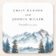 Winter Mountains Pine Tree Wedding Square Paper Coaster