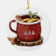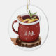 Hand-painted digital watercolor illustration of a cosy winter mulled wine drink served in a festive red mug with Christmas- themed decorations. the drink is garnished with orange slices, a cinnamon stick, and a sprig of rosemary. the mug sits on a wooden coaster, surrounded by additional cinnamon sticks. Perfect for holiday designs, Christmas cards, New Year projects, recipe illustrations, and seasonal decor.