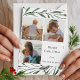 Send holiday wishes and greetings to friends, colleagues and family in simple, chic, elegant and modern 3 photo collage design festive, natural nature color style folded holiday cards! A beautiful frame of soft green painted watercolor leaves, surrounded by gold confetti flakes in front. The middle features your 3 photos with your custom greeting message on the bottom right " Merry Christmas" in roman typography, with your names, and the year. Simply click the 'Personalize this template' to change you photos (front) and Greeting messages (front and Inside).
