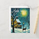 Winter Night Forest Full Moon Cabin Deer Christmas Holiday Postcard