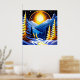 Winter Night Landscape With Snowy Mountains Poster