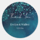 This beautiful midnight navy and royal blue "Thank You" sticker features assorted silver and turquoise snowflakes along with your names and date in serif fonts.
