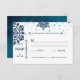 This beautiful midnight navy and royal blue RSVP card features assorted silver snowflakes RSVP details in serif fonts. Your names is featured on the back along with your wedding date.
