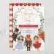 Whimsical nutcracker themed birthday invitation in festive red and gold