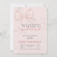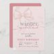Winter Onederlan Pink Bow Baby First Birthday Invitation