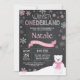 Winter Onederland Polar Bear 1st Birthday Invitation. Deer. Pink and White Snowflake. First Birthday. Girl 1st Bday Invite. Chalkboard Background. Black and White. For further customisation, please click the "Customise it" button and use our design tool to modify this template.
