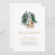 Celebrate your baby’s first birthday with this gender neutral birthday invitation featuring a watercolor winter themed illustration of a fawn and a deer in front of a snowy forest.