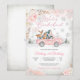 Celebrate your little ones special day with this charming Winter Onederland birthday invitation. Featuring a pink vintage truck carrying woodland animals, balloons, and delicate snowflakes, this design perfectly blends whimsical charm with a festive winter theme. Elegant fonts in soft pink and grey add a touch of sophistication, making it ideal for a girls first birthday party. Personalise with your event details and delight guests with a magical winter celebration theyll never forget.