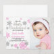 Winter Onederland Birthday Invitations Pink White with photo