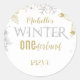 Winter Onederland Birthday Silver Gold Snowflake Classic Round Sticker