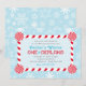 Celebrate your little snowflake's first birthday with this Winter ONEderland invitation featuring a red peppermint candy cane frame on an ice blue snowflake background. "Winter ONEderland" appears in festive lettering, with party details framed by the sweet candy cane border. Ice blue, turquoise, red, and white tones create a cheerful winter celebration feel. All text is fully customisable including the name, date, and event details.