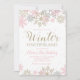 Winter Onederland first birthday invitation with gold, silver and pink snowflakes.