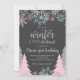 Winter Onederland Pink, Blue, Silver glitter Snowflakes and trees first birthday party invitation.
