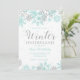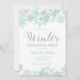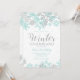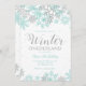 Winter Onederland first birthday invitation with teal and silver glitter snowflakes.