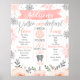 Sweet pink and silver winter onederland first birthday milestone poster featuring a pink floral arrangement and pink and silver snowflakes. This is a sweet way to recall your little girls milestones and is a great decoration for her birthday and then as a keepsake. Same design birthday invitation and more is available at the store.