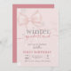 Winter Onederland Pink Snowflake Bow 1st Birthday Invitation