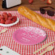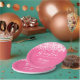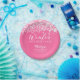 Cute winter snowflake theme kid's birthday party paper plate featuring typography text that says "Winter ONEDERLAND" with glowing snowflakes around. The background is pink. Great for a girl's party during the Christmas time.