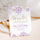 Winter Onederland first birthday invitation with purple and gold snowflakes.