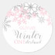 Winter Onederland Silver and Pink Snowflake Classic Round Sticker