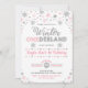 Winter ONEderland Silver Pink Snowflake Birthday Invitation