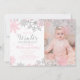 Winter ONEderland first birthday with pink and silver glitter snowflakes photo birthday invitation.