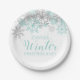 Winter Onederland First Birthday Party paper plates. Teal and Silver Snowflakes.