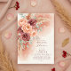 Invite your loved ones with this elegant winter bridal shower invitation, designed on warm terracotta-cream tones for a cosy seasonal feel. A graceful floral arrangement decorates the top corner, featuring dried pampas grass, peach and deep burgundy peonies, frosted eucalyptus, soft green sprigs, and tiny red berries with gentle snowflakes for a festive touch. The design includes editable text, making it easy to add your event details. Perfect for brides who love romantic, winter-inspired florals.
