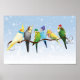 My own original and hand painted design, Winter Parakeets and Cockatiels!
