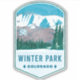 A vintage ski badge design of Winter Park during winter located in Grand County, Colorado, United States