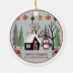 This Winter Penguin themed Christmas ornament is the perfect way to celebrate the Holidays! Featuring a charming picture of a cute penguin wearing a scarf and hat, with a cosy little house surrounded by trees and presents, as well as pretty snowflakes and festive ornaments, it will bring a smile to your face and make your Christmas tree look even more beautiful! So why not give the gift of cheer this Holiday season and make your house a home with this delightful Winter Penguin ornament!