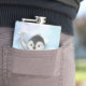 The flask itself is fine. It’s a cheap flask, obviously bought in bulk, however am prepared to overlook that. Given that it is a personalized item, I would have liked to have seen gift boxing instead of the generic packaging. Terrible printing, and/or quality. It’s a cheap, tacky vinyl. It is not cut straight and is also applied in a way that it is overhanging the bottom, causing the glue to catch on items and it will eventually roll and tear, damaging the wrap.