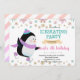 Winter penguin ice skating party invitation