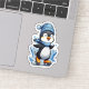 Cool winter Penguin wearing a head warmer and scarf skating on ice transparent background Graphic art