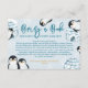 Add a touch of wintry charm to your baby shower with our 'Bring a Book for Baby's Snowy Library!' card. This adorable card invites your guests to bring their favourite children's book, creating a cherished library of stories and memories for your little one. Featuring a delightful design with hand-painted penguins, igloos, and snowflakes on an icy blue background, it's the perfect way to inspire a love for reading from day one.
