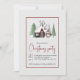 Winter scene with trees, a house, a penguin and snowfall Christmas party Invitation