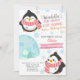 Penguins winter girl birthday invitation.