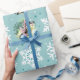 Sea foam or turquoise colour with snowflake patterns gift wrapper. Use your own favourite pictures to customise this Holiday photo Christmas gift wrapper. Square orientated photos works best