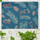Winter Pine and Berries Watercolor Pattern Tea Towel