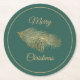 Festive Christmas party paper coasters done in a dark Kelly green with gold tone edging accent. Golden graphics of a pine cone on a pine branch, decorates the middle. Merry Christmas, in gold tone text, can be personalised to read what you want. Matching holiday party supplies and invitations are available.