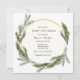 Elegant Winter-themed baby sprinkle shower invitation features a gold frame surrounded by watercolor evergreen and pine. Personalise with your information or click "Click to customise further" to edit font styles, size and colours.