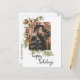 Rustic vintage-inspired pine cones and evergreen branches with photo template and custom Happy Holidays calligraphy script. Back features complementary graphics and suggested greeting.