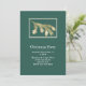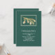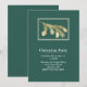 Christmas party invitation done in a Kelly green, with graphics of a gold tone pine branch with pine cones. Personalise the white coloured text fields to suit your holiday needs.