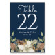 Winter Pine Navy Blue Wedding Table Number Cards
