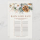 This is a Winter Pine Tree Floral Baby Name Race Baby Shower Game.