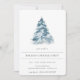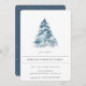 Arctic Winter blue frosted pine tree, Holiday Party Invitation. Card features, soft grey typography and white snowflake overlay pattern backing on blue background.